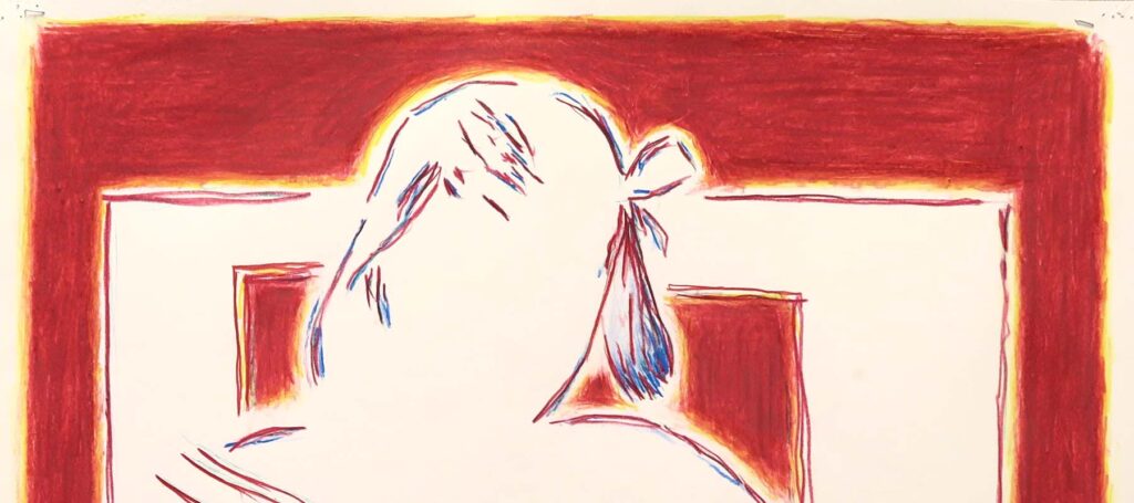 Tekeningen in potlood en oplichtend pigment op papier.